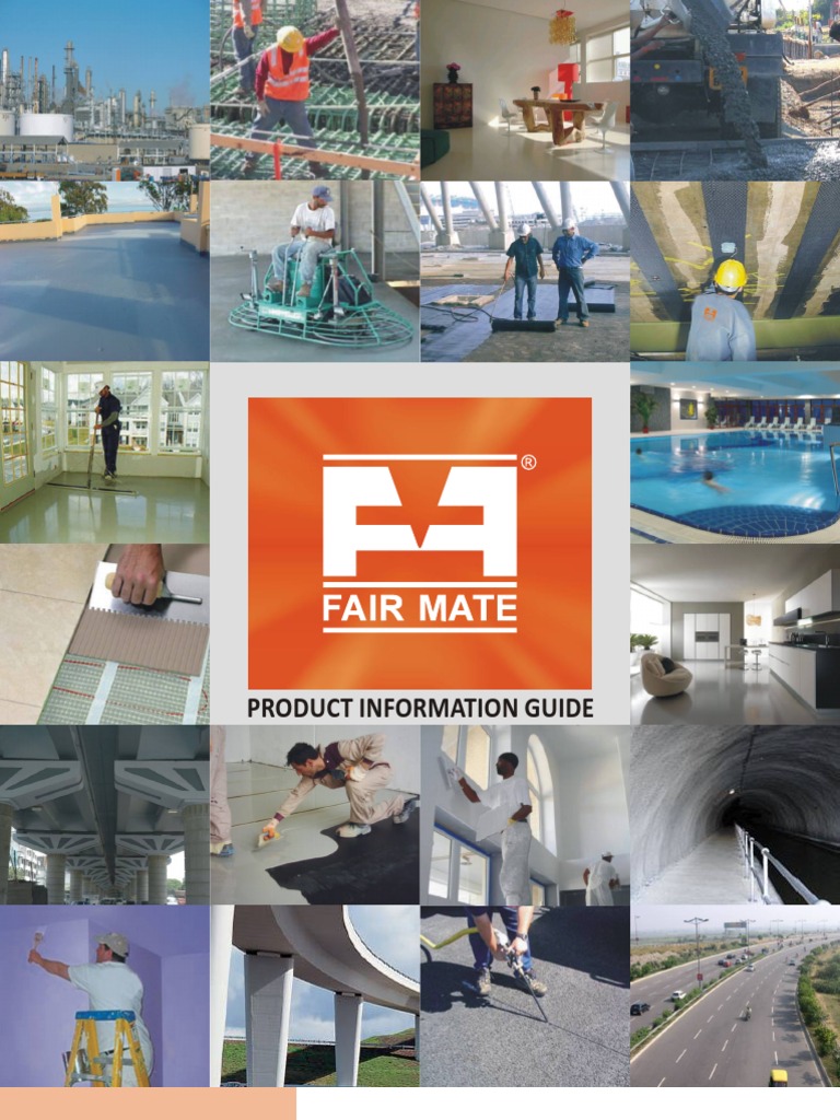 FAIRMATE is an Indian Multi-national construction chemicals manufacturing company having offices and operations in various parts of the world. We have our Corporate office in Baroda, India and our branch offices are spread across country. FAIRMATE is serving Construction Industry for more than three decades. Apart from our existing manufacturing facilities in India, Dubai and Far-East, FAIRMATE has widened its presence to few more countries like Nepal, Pakistan, Sri Lanka, South Korea, Turkey, Lebanon and Qatar etc. FAIRMATE manufactures complete range of construction chemicals and is also providing total cost-effective solutions and World Class Services to Speciality Construction Chemical Industry by using our expertise and strategic alliances with leading partners. We have a primary technical collaboration with M/s Resin Building Products Ltd., UK and M/s Morton Chemicals, USA. Our continuous research and efforts in developing new products have resulted in introducing more than 350 products in the Civil Engineering Industry. Our products are broadly classified as Concrete Admixture, Waterproofing System, Engineering Grouts, Industrial Flooring System, Surface Treatment, Concrete Repairs, Pre-packed Concrete and Mortar, Protective Coating, Sealants, Highway Repairs and Fire Protection systems. QUALITY FOCUS FAIRMATE has set-up its plant and state-of-art R&D centres in various parts of the globe. Quality has always been an integral part of Management Philosophy. Ensuring international standard products to our esteemed customers, we have been accredited by ISO 9001 and ISO (EMS) 14001, which emphasize the quality system of each and every step of processing and 'zero' defect operations. We have gone further and have implemented ISO (OHSAS) 18001, which relates to total operational Health and Safety. To ensure Total Customer Satisfaction FAIRMATE is now marching towards SIX SIGMA. We are proud to share with you that FAIRMATE has now become the member of IGBC - Indian Green Building Council, Hyderabad. We are now part of Green Building movement.