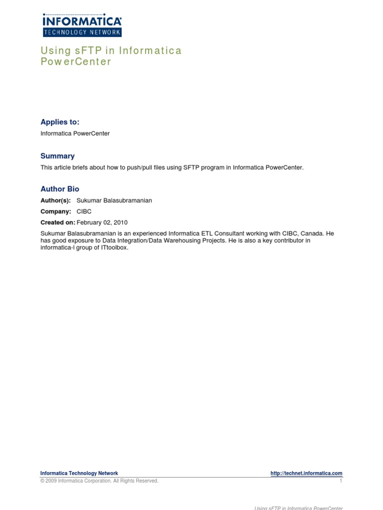 Author(s): Sukumar Balasubramanian Company: CIBC Created on: February 02, 2010 Sukumar Balasubramanian is an experienced Informatica ETL Consultant working with CIBC, Canada. He has good exposure to Data Integration/Data Warehousing Projects. He is also a key contributor in informatica-l group of ITtoolbox.