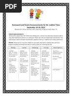 Mr. Judkins Third/Fourth Grade 20122013 Welcome to our classroom! Class Web Site: I believe in providing excellent communication to parents and students in our class. You will find our classroom web sites loaded with information for parents and children. Our websites are always up to date so you can be sure what you are reading is accurate. You will find parent announcements, homework assignments and handouts, our spelling lists, a calendar of events, curriculum, helpful web sites to reinforce our grade level skills, photos of classroom projects and memories, classroom projects, parent conference schedules, our schedule, and much more! Be sure to bookmark our site or add it to your favorites list for quick access. Mr Judkins website: http://mrjudkinsclass.blogspot.com/ Student Work On the Web Site: Some of your childs work may be posted to our website with parent permission. It is a wonderful way to view your childs accomplishments. Rest assured that your childs name will NEVER appear next to a photo of your child. Student work is listed by first name only. Contacting Me: I check my email all throughout the day and evening. It is a great way to get feedback to your questions or comments, and I encourage you to contact me this way. Important Note if you have a message you need to get to your child before the end of the day please call Janice or Sonya in the school office at 684-2292 and leave the message with them. My email address is sjudkins@danvillek12vt.us . Feel free to send me a note even after school hours, I may not check my messages as often but generally before the night is over I will. Responsibility Folders: This will be our hometoschool connection folder for all incomplete work, homework and school correspondence. Homework: Our homework packet is passed out on Friday and is due the next Friday. Homework should take 3040 per night (MondayThursday) to complete. The homework packet should be brought home in the Responsibilty Folder. Ill include parent announcements and upcoming due dates so be sure to read it. Students are expected to read for a minimum of 15 minutes each night and