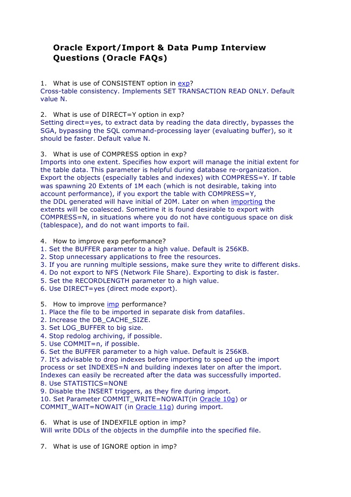 Oracle Export/Import & Data Pump Interview Questions (Oracle FAQs)