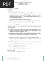 VII. Motion to Quash (Rule 117) a. Time to move to quash b. Form required c. Grounds d. Distinguish Motion to Quash from Demurrer to Evidence e. Effects of sustaining the motion to quash f. Exception to the rule that sustaining the motion is not a bar to another prosecution g. Double Jeopardy a. Requisites h. Distinguish dismissal from aquittal i. Provisional Dismissal VIII. Pre-Trial (Rule 118) a. When is pre-trial required b. Matters to be considered during pre-trial c. Pre-trial agreement d. Non-appearance during pre-trial e. Pre-trial order IX. Trial (Rule 119) a. Time to prepare for trial b. Instances when presence of accused is required by law c. Demurrer to Evidence d. Discharge of Accused to be State Witness a. Requisites b. Effects of Discharge of accused as state witness X. Judgment (Rule 120) a. Definition b. Requisites of a judgment c. Contents of the judgment d. Promulgation of judgment e. Instances of promulgation of judgment in absentia f. Promulgation of Judgment g. How judgment modified h. Entry of judgment XI. New Trial or Reconsideration (Rule 121) a. Time to file b. Distinctions between New Trial and Reconsideration c. Grounds for New Trial d. Grounds for Reconsideration e. Effects of granting new trial or reconsideration XII. Appeal (Rule 122) a. Effects of an appeal b. Who may appeal c. Where to appeal d. How to appeal