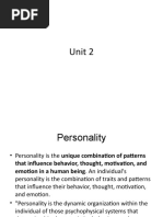 Personality refers to the relatively stable pattern of behaviors and consistent internal states that explains a persons behavioral tendencies. Personality has both internal and external elements. External traits are the observable behaviors that we rely on to identify someones personality. The internal states represent the thoughts, value, and genetic characteristics that we infer from the observable behaviors.