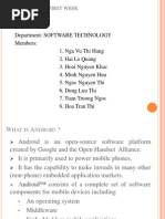 Google acquired the startup company Android Inc. in 2005 to start the development of the Android platform the key players at Android Inc. included Andy Rubin, Rich Miner, Nick Sears and Chris White. Android is mobile operating system initially developed by Android Inc. Android members of the Open Handset collaborated on androids developments and release. The android open source project (AOSP) is tasked with the maintenance and further development of android. Android has a large community of developers writing application programmers (apps) that extend the functionality of the devices. There are currently 2, 00,000 apps available in the android market. Android market is run by Google, though apps can be downloaded from thirdparty sites.