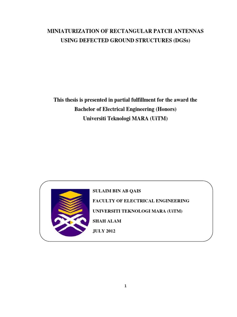 [1] Pozar, D.M. Microstrip antennas. Proceedings of the IEEE. Volume 80, Issue 1, Jan. 1992 Page(s):79 91. [2] M.I.A. Khaliah, Electromagnetic Band Gap (EBG) for Microstrip Antenna Design, Master of Engineering (Electrical Electronic Telecommunication), Faculty of Electrical Engineering, Universiti Teknologi Malaysia 2007. [3] Ahmed A. Kishk, Fundamentals of Antennas, Center of Electromagnetic System Research (CEDAR), Department of Electrical Engineering, University of Mississippi. [4] R, M. Kamal, Electromagnetic Band Gap (EBG) Structure in Microwave Device Design, Jabatan Kejuruteraan Radio, Fakulti Kejuruteraan Elektrik, Universiti Teknologi Malaysia 2008. [5] C.V.V. Reddy, Design of Linear Polarized Rectanglar Microstrip Patch Antenna Using IEED/PSO, Department of Electronics and Communication Engineering, National Institute of Technology Rourkela 2009. [6] H, Suria, Antenna with Metamaterial Design,Faculty of Electrical Engineering, Universiti Teknologi Malaysia 2007. [7] J. Q. Howell, Microstrip Antennas, in Dig. Int. Symp. Antennas Propogat. Soc., Williamsburg, VA, Dec. 1972, pp. 177-180 [8] Nashaat, D.; Elsadek, H.A.; Abdallah, E.; Elhenawy, H.; Iskander, M.F.; , "Multiband and miniaturized inset feed microstrip patch antenna using multiple spiral-shaped defect ground structure (DGS)," Antennas and Propagation Society International Symposium, 2009. APSURSI '09. IEEE , vol., no., pp.1-4, 1-5 June 2009 [9] Debatosh Guha, Microstrip and printed antennas, new trends technique and application, John Wiley & Sons, New York, 2010 [10] Matin, M.A. A Design Rule for Inset-fed Rectangular Microstrip Patch Antenna,.
