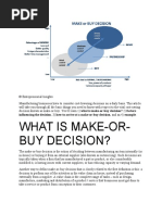 The make-or-buy decision is the act of making a strategic choice between producing an item internally (in-house) or buying it externally (from an outside supplier). The buy side of the decision also is referred to as outsourcing. Make-or-buy decisions usually arise when a firm that has developed a product or partor significantly modified a product or partis having trouble with current suppliers, or has diminishing capacity or changing demand. Make-or-buy analysis is conducted at the strategic and operational level. Obviously, the strategic level is the more long-range of the two. Variables considered at the strategic level include analysis of the future, as well as the current environment. Issues like government regulation, competing firms, and market trends all have a strategic impact on the make-or-buy decision. Of course, firms should make items that reinforce or are in-line with their core competencies. These are areas in which the firm is strongest and which give the firm a competitive advantage. The increased existence of firms that utilize the concept of lean manufacturing has prompted an increase in outsourcing. Manufacturers are tending to purchase subassemblies rather than piece parts, and are outsourcing activities ranging from logistics to administrative services. In their 2003 book World Class Supply Management, David Burt, Donald Dobler, and Stephen Starling present a rule of thumb for out-sourcing. It prescribes that a firm outsource all items that do not fit one of the following three categories: (1) the item is critical to the success of the product, including customer perception of important product attributes; (2) the item requires specialized design and manufacturing skills or equipment, and the number of capable and reliable suppliers is extremely limited; and (3) the item fits well within the firm's core competencies, or within those the firm must develop to fulfill future plans. Items that fit under one of these three categories are considered strategic in nature and should be produced internally if at all possible. Make-or-buy decisions also occur at the operational level. Analysis in separate texts by Burt, Dobler, and Starling, as well as Joel Wisner, G. Keong Leong, and Keah-Choon Tan, suggest these considerations that favor making a part in-house: Cost considerations (less expensive to make the part) Desire to integrate plant operations Productive use of excess plant capacity to help absorb fixed overhead (using existing idle capacity) Need to exert direct control over production and/or quality Better quality control