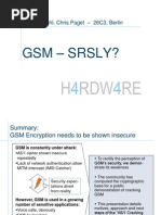 Preface This Masters Thesis is the result of our work in the 10th semester of the 5-year MSc in Communication Technology at the Department of Telematics, Norwegian University of Science and Technology. The work has been carried out in the spring of 2010 in Trondheim, Norway. The motivation and aim for this thesis was originally a research into the rainbow table generation projects attack against GSM. However, the GSM standard proved to be a complicated matter that took us some time to fully understand. The GSM specications constitute well over 1000 documents; and although a considerably large part of the specications might be redundant, it is way too incomprehensible for the average person. Consequently, the rst part of this thesis attempts to describe the specications, which will later be veried with real-world captured signals. The study can be seen as a preliminary step in the process of capturing known plaintext and speech trac. Hopefully, this work can be informative and useful as a starting point for people wanting to learn more about the theoretical and practical aspects of GSM. We would like to thank our professors Stig Frode Mjlsnes and Danilo Gligoroski for feedback and great support during the work. We really appreciate their vast knowledge and skill in key areas such as cryptography, wireless security, ethics, and their assistance in writing reports. Gratitude also to Pl Sturla Sther and Asbjrn Karstensen at ITEM for fullling our many hardware requests. A nal thank you to Frank A. Stevenson for including us in the A5/1 Security Project and participating in valuable discussions.