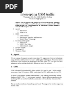 There are several angles of attack against GSM; on the ciphering algorithm itself and on the system as a whole with its attached equipment. However, this thesis will only cover the following two attack scenarios: 1. The passive attack utilizing rainbow tables to crack the ciphering algorithm and the USRP together with software for passive interception of trac. 2. The active attack utilizing the fact that authentication of the network is not performed. Regarding the architecture of GSM, the main target (of this thesis) is the air interface between the Mobile Station (MS) and the Base Transceiver Station (BTS). The network side of GSM will not be explored in detail.