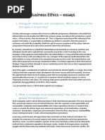 (9) What were the principal irresponsible actions of Union Carbide in the Bhopal explosion? (10) What actions of the Tobacco companies in third world countries are especially exploitive? (11) What reasons do some multinationals give for not abiding by US standards in third world countries? Cultural Relativism and Universal Moral Principles (12) Define cultural relativism (13) What are some moral values that seem to be held by all cultures? (14) What are Norman Bowies three recommended moral principles for multinationals? (15) What external monitoring organizations help assure that multinationals act responsibly?