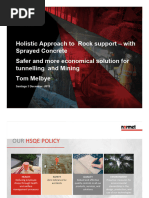 Sprayed concrete takes care of stability problems in tunnels and other underground constructions. Today sprayed concrete is a key factor for rock support in Tunnelling Mining operations Hydropower projects Slope stabilization More than 90 % of all sprayed concrete is used for rock support. In comparison with traditional concrete, sprayed concrete is used today to a relatively small extent, but when it is used, it is done so in many different ways. Some examples: Pit curbing Canal lining Reconstruction and repair Sea walls Refractory Fire and corrosion protection Spraying of new constructions Agriculture (manure pits) Plastering and stabilizing of brick walls Sprayed concrete is the building method of the future due to Flexibility Rapidity Economy Only use your imagination there are no limitations....