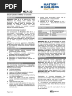 In a mortar (according to EN 196-1): (Equipment: Hobbart mixer, manual Vicat needle, mortar prism forms) 1) Pour 195 g of water into the mixer, add 2-6 g of plasticizer and 450 g of cement (+20C 1C) and stir for 30 sec 2) Add 1350 g of norm sand and mix for 30 sec 3) Mix at medium speed for 30 sec 4) Stop for 90 sec 5) Mix again for 30 sec 6) Check the flow of the mortar (according to EN 196-1). Required flow: 1518 cm. Adjust by adding water, if necessary 7) Add accelerator and mix for max. 15 sec 8) Immediately after mixing: prepare the test prism 9) Fill the prism form on a vibration table to avoid bad compaction 10) Place it under the manual Vicat needle and start measuring the penetration 11) Record initial set (needle stops 1-2 mm from the bottom of the cement mouse) 12) Record final set (needle cannot penetrate into the cement mouse) 13) Measure the compressive strength at 6 hours and at 24 hours Interpretation of results: Initial set <2 min Final set <6 min 6-hour strength 2.5-4 MPa 24-hour strength 18-25 MPa Rating good
