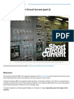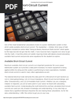 A Short Circuit analysis is used to determine the magnitude of short circuit current the system is capable of producing and compares that magnitude with the interrupting rating of the overcurrent protective devices (OCPD). Since the interrupting ratings are based by the standards, the methods used in conducting a short circuit analysis must conform to the procedures which the standard making organizations specify for this purpose. In the United States, the America National Standards Institute (ANSI) publishes both the standards for equipment and the application guides, which describes the calculation methods. Short circuit currents impose the most serious general hazard to power distribution system components and are the prime concerns in developing and applying protection systems. Fortunately, short circuit currents are relatively easy to calculate. The application of three or four fundamental concepts of circuit analysis will derive the basic nature of short circuit currents. These concepts will be stated and utilized in a step-bystep development. The three phase bolted short circuit currents are the basic reference quantities in a system study. In all cases, knowledge of the three phase bolted fault value is wanted and needs to be singled out for independent treatment. This will set the pattern to be used in other cases. A device that interrupts short circuit current, is a device connected into an electric circuit to provide protection against excessive damage when a short circuit occurs. It provides this protection by automatically interrupting the large value of current flow, so the device should be rated to interrupt and stop the flow of fault current without damage to the overcurrent protection device. The OCPD will also provide automatic interruption of overload currents. Listed here are reference values that will be needed in the calculation of fault current. Impedance Values for Three phase transformers HV Rating 2.4KV 13.8KV HV Rating 2.4KV 13.8KV General Purpose less then 600V 300 500KVA 750 2500KVA 15 1000KVA Not less than 4.5% 5.75% 3% to 5.75%