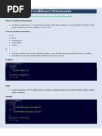 ifelse Statement The if statement is a powerful decision making statement and is used to controlthe flow of execution of statements. It is basically a two-way decision statement and is used in conjunction with an expression. Syntax if (conditional) { block of statements executed if conditional is true; } else { block of statements if condition false; } Switch Statement: The switch and case statements help control complex conditional and branching operations. The switch statement transfers control to a statement within its body.