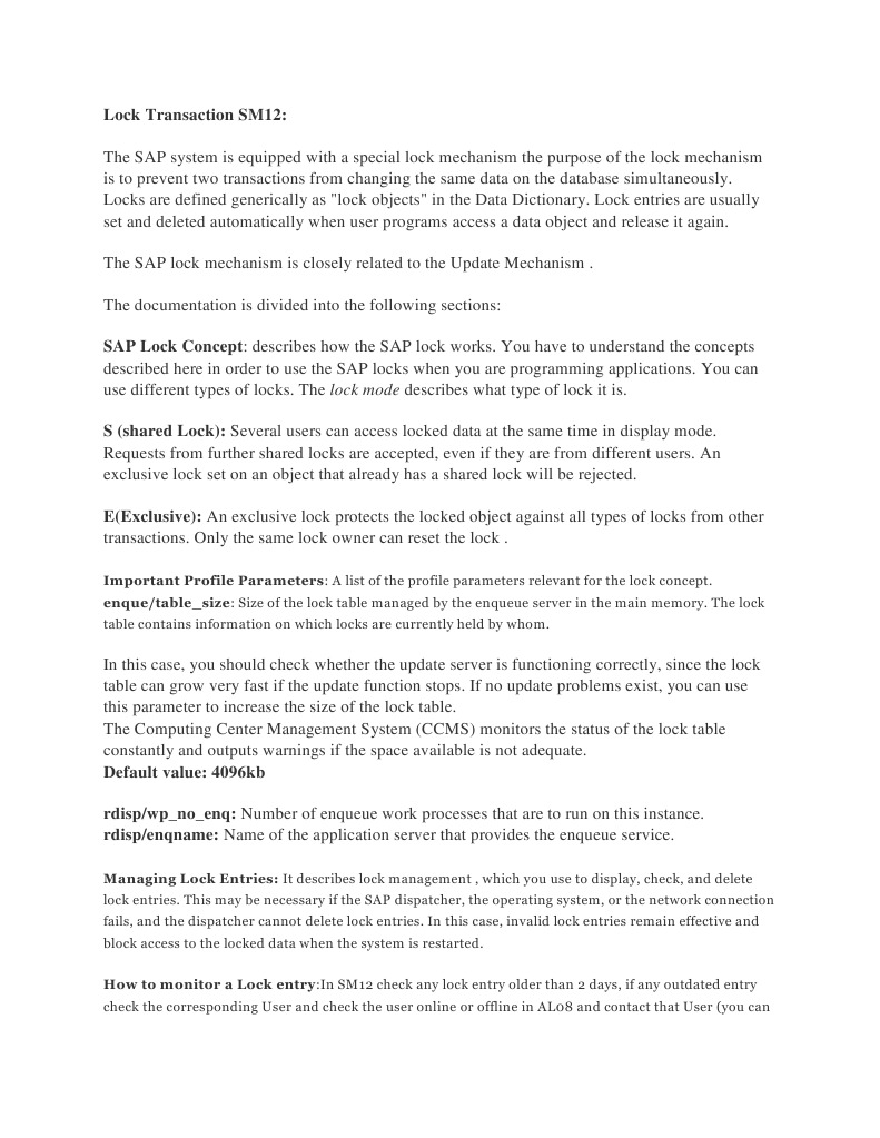 Lock Transaction SM12: The SAP system is equipped with a special lock mechanism the purpose of the lock