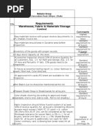 order or cut is greater than 2000 then lot size must be adjusted (and it is selected as predefined amount of boxes i.e. pallet, row, column. For calculation purposes one standard box represents 20 garments (2 half boxes are 1 standard box) The lot size for measurements audit may be that lot size for workmanship audit. 1 lot size may not be split into partial shipments. Remainders of a cut or order should be treated as a lot. d) Sampling plan - A sample plan is a combination of a sample (sizes) to be used and associated lot acceptability criteria. - For workmanship and packing accuracy-: a single sample plan will be used. A single sample plan is a combination of sample size and acceptance and rejection members. The sample plan is inspected and the number of nonconforming item discovered is counted. If the number of nonconforming items is less than or equal to the acceptance number, the entire lot is to be accepted. Only those items in the sample that were found nonconforming items are equal to or greater than the rejection number, the entire lot is not accepted. - For measurements -: A single sample plan will be used which differs in one case from the sample plan above mentioned for workmanship and packing accuracy. The acceptance limit is not expressed as a number but as a percentage. In case the number of non confirming items exceeds 5%, the entire lot is not accepted. e) Sample selection