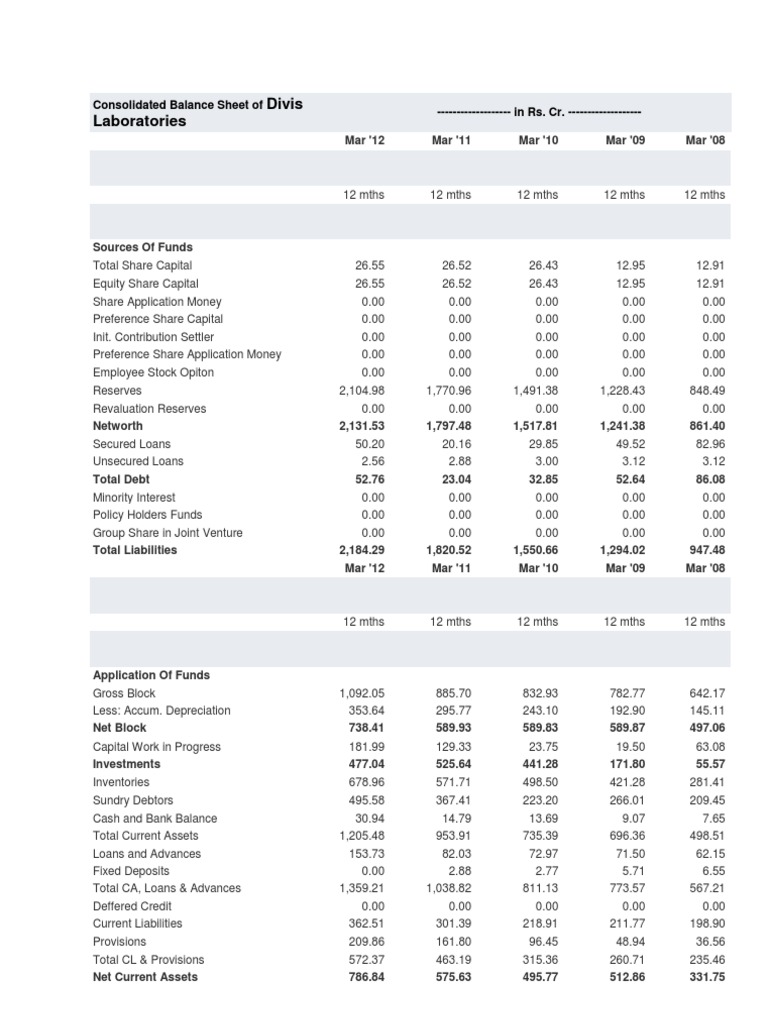 Consolidated Balance Sheet of Divis