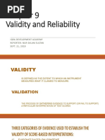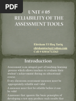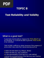Wollack Testing & Evaluation Services University of Wisconsin 1025 W. Johnson St., #373 Madison, WI 53706 November, 2003 2 An Instructors Guide to Understanding Test Reliability Test reliability refers to the consistency of scores students would receive on a lternate forms of the same test. Due to differences in the exact content being assessed o n the alternate forms, environmental variables such as fatigue or lighting, or student error in responding, no two tests will consistently produce identical results. This is tr ue regardless of how similar the two tests are. In fact, even the same test adminis tered to the same group of students a day later will result in two sets of scores that do not perfectly coincide. Obviously, when we administer two tests covering similar material, we prefer students scores be similar. The more comparable the scores are, the more reliable the test scores are. It is important to be concerned with a tests reliability for two reasons. First, reliability provides a measure of the extent to which an examinees score reflects random measurement error. Measurement errors are caused by one of three factors: (a) examinee-specific factors such as motivation, concentration, fatigue, boredom, momentary lapses of memory, carelessness in marking answers, and luck in guessin g, (b) test-specific factors such as the specific set of questions selected for a test, ambiguous or tricky items, and poor directions, and (c) scoring-specific factors such as nonu niform scoring guidelines, carelessness, and counting or computational errors. These er rors are random in that their effect on a students test score is unpredictable sometimes t hey help students answer items correctly while other times they cause students to an swer incorrectly. In an unreliable test, students scores consist largely of measuremen t error. An unreliable test offers no advantage over randomly assigning test scores to st udents. 3 Therefore, it is desirable to use tests with good measures of reliability, so as to ensure that the test scores reflect more than just random error. The second reason to be concerned with reliability is that it is a precursor to test validity. That is, if test scores cannot be assigned consistently, it is impossi ble to conclude that the scores accurately measure the domain of interest. Validity ref ers to the extent to which the inferences made from a test (i.e., that the student knows th e material