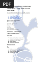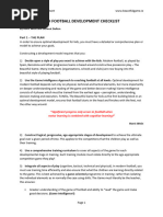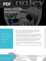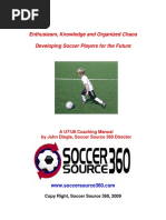 feet, and then applying the proper touch on the ball are all essentials in building a solid foundation for good technique. Instruct your players to receive the ball on the half-turn as this will give the player many more options. Receiving the ball using the back foot requires the player to position his body, and in particular, his feet when receiving the ball so that he can comfortably and quickly play it on. When time and space become a premium, players with better technique will have more time on the ball and be more successful within using the ball. An absolute priority is to develop a clean first touch. Receiving and position the ball as it arrives, allows more time to release the ball with an accurate, well timed and well-paced pass. The first touch is the key to becoming a quality player. A good first touch allows you to keep the ball or to play it off first time, thus creating a serious problem for the defender. Attacking Play With a solid grounding in technique established, you can now begin to coach your players in attacking play. The greater the control a player has in the final third, the greater the chance to dictate to your opponents. It is especially important to keep the ball and probe for scoring possibilities. In attacking play, all the players must contribute, from the keeper and the backs to the forwards, everyone has a role to play. Perhaps the key to good attacking play is passing angles. Running, passing and looking in straight lines narrows the view of the game and lacks creativity. It is important to pass short and long and to play angles, not just straight lines. Third Man Running It is more than just the player with the ball and one player off it; passing must include consideration for the third man. In teaching a player third man running; pay attention to wide angles, avoid straight line running. When you make wide runs, you open up more room to play into. The art of the third man running is in the speed of execution. With constant practice and repetition, this will become automatic when the game pressure kicks in. Setting up Play This involves 2 disciplines: first, the delivery of the ball to the front men, and, second, the way in which the front men decide to hold the ball, control it, turn, or deliver the next pass. You must be confident enough to play in to marked players and move opposing defenders around to break down the defense as a whole. It is important to play the way you are facing, to open up defenses by movement and to make penetrating passes. Assessing Young Players How do you balance first impression with long-term prospects? Use the following 6 criteria as a guide: 1.Natural ability and technique/skill 2.Knowledge and awareness 3.Courage and bravery 4.Character and mental toughness 5.Speed and mobility 6. Anticipation