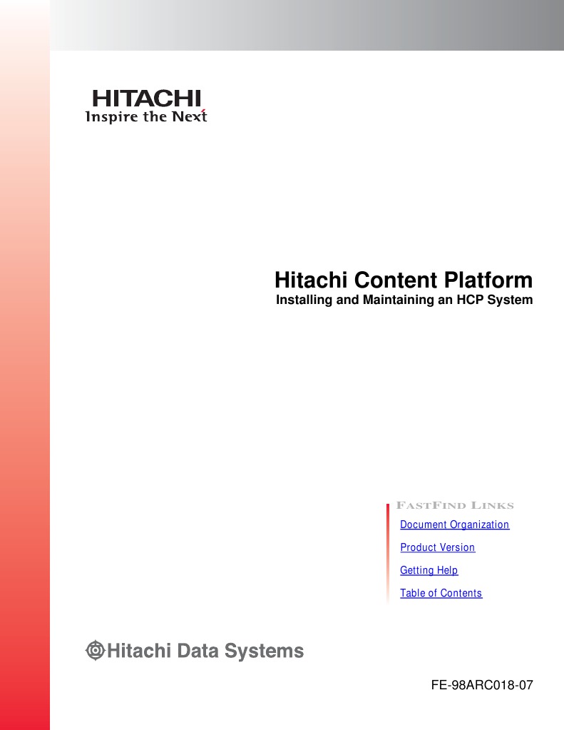 This book is the service guide for Hitachi Content Platform (HCP). It contains complete information for installing and upgrading HCP system software. It also provides instructions for system reconfiguration, management, and troubleshooting procedures not available to customers. This book focuses on the HCP software. For information on maintaining the hardware for an HCP system, see the applicable HCP hardware maintenance documentation. Note: Throughout this book, the word Unix is used to represent all UNIXlike operating systems (such as UNIX itself or Linux), except where Linux is specifically required.