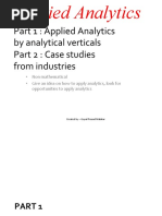 4. Insurance The insurance industry is probably the one area which stands to leap forward the most from analytics, given that currently, there is a low level of data mining and process automation in use, as compared to the consumer banking industry. A data driven approach to decision making will help in a number of areas, including: Insurance Scoring: Developing models to predict the likelihood of occurrence of claims using credit information along with the past history of claims filings. Claims Analysis: Modeling for frequency and severity of claims leading to 1. Improved Pricing 2. Better Reserve Management Underwriting Automation: Improving the efficiency of processes by automating decision making criteria. Customer Acquisition & Servicing: Maximizing returns on marketing expenditures through 1. Targeted Acquisition Campaigns 2. Channel Effectiveness, including analysis of internet, sales force, etc. 3. Cross-Selling 4. Proactive Renewal Strategies Capital Allocation / Management: Maximizing portfolio ROI across lines of businesses such as Casualty, Life, Property, Annuities, etc., by optimal allocation of capital. New Product Development & Alignment: Designing and testing the efficacy of new products specifically created in response to emerging market trends. Profiling customer characteristics to better align existing products with the specific needs of the customers