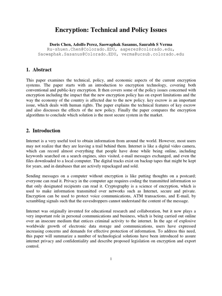 This paper examines the technical, policy, and economic aspects of the current encryption systems. The paper starts with an introduction to encryption technology, covering both conventional and public-key encryption. It then covers some of the policy issues concerned with encryption including the impact that the new encryption policy has on export limitations and the way the economy of the country is affected due to the new policy. key escrow is an important issue, which deals with human rights. The paper explains the technical features of key escrow and also discusses the effects of the new policy. Finally the paper compares the encryption algorithms to conclude which solution is the most secure system in the market.