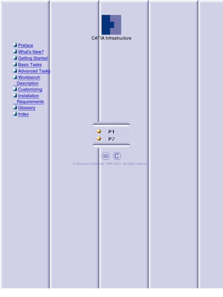 Tile Vertically Turn Head Undo User Galaxy Walk What's This? Wireframe (NHR) Zoom Area Zoom In Zoom Out Contents, Index and Search command contextual help Copy command Copy icon copying CATIA V5 images to OLE-compliant applications copying and pasting objects copying images to clipboard creating CATIA V5 data in OLE-compliant applications new documents user-defined views Ctrl-clicking Customize command customizing , ,
