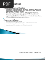 Vibration - Introduction Vibration theory, Free Vibration, Free body diagram of the system Single-Degree of Freedom (SDOF) Transient and stead state response. Frequency response functions. Mass, stiffness and damping controlled regions. Practical applications. Vibration of Multi-Degree of Freedom (MDOF) systems Lagranges equation of motion. Free and forced response using direct solutions of equation of motion. Forced Response by modal analysis. Introduction to orthogonality and generalised coordinates. Transmissibility. Vibration Measurement transducers. Experimental frequency analysis. Experimental modal analysis. Free and forced vibration of continuous elastic systems Rayleighs method for the fundamental natural frequency Mechanical Vibration - Noise