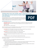1 Calves: Stand approximately 1 metre away from wall with legs straight and heels on floor. Step and lean forward and slowly push hips towards wall. Should feel a slow pull in the calf muscle behind. Hold for 10 secs, swap legs, repeat 3 times. Should feel pull but no pain. 2 Hamstrings: Stand with feet 1 metre apart. With legs straight and hands behind back slowly bend forward at the hips keeping back straight and head up. Should feel a slow pull in muscles at the back of legs. Hold for 10 secs, stand up and lean slightly backwards, repeat 3 times. Should feel pull but no pain. 3 Quads: Standing with feet together, bring left foot up and put left hand on lower shin by ankle and pull behind bottom. Keep back straight and head up. May need to balance with right hand on wall. Should feel slow pull down front of leg. Hold for 10 secs, swap legs, repeat 3 times. Should feel pull but no pain. 4 Groin: Stand with feet 1 metre apart and both feet pointing forward. Keeping back straight and head up slowly lunge down to right side feeling pull on inside of left leg. Hold for 10 secs, swap legs, repeat 3 times. Should feel pull but no pain. 5 Hips: Stand with feet shoulder width apart and hands on hips. Keeping head still rotate hips round clockwise 10 times and anti clockwise 10 times. Repeat three times. 6 Torso: Stand with feet shoulder width apart and hands on head. Keep feet pointing forward but twist body as far as is comfortable, hold for 1 second, face forward, twist body in other direction, hold for 1 second, face forward. Repeat 10 times. 7 Shoulder: Stand with feet shoulder width apart. Start with hands by hips and keeping arms straight slowly swing arms round backwards 10 times, change direction swinging arms forwards 10 times. Repeat 3 times. 8 Standing stretch: Stand with feet together. Place hands together and reach as high as you can, hold for 10 secs, relax. Repeat 3 times. N.B. You should only stretch warmed up muscles. Dont stretch too far, all you should feel is a slow pull, never any pain. Never bounce, always stretch slowly. People with old injuries or bad backs should be especially careful whilst exercising and stretching.