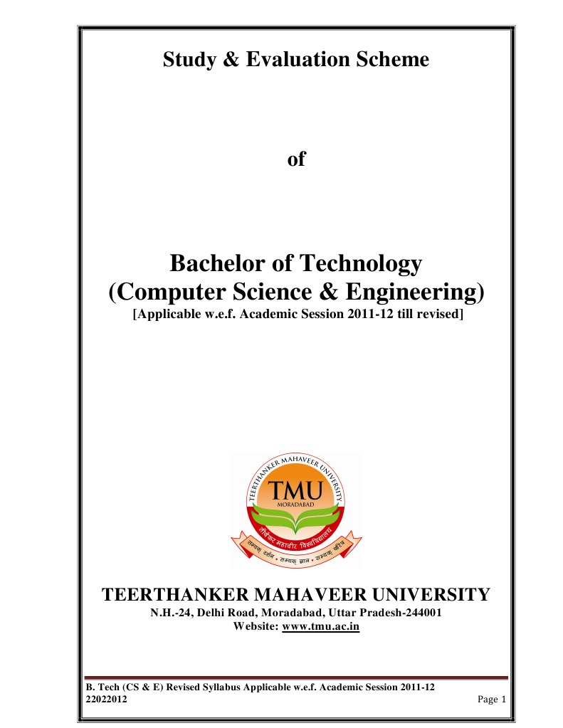 B. Tech (CS & E) Revised Syllabus Applicable w.e.f. Academic Session 2011-12 22022012