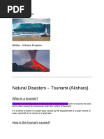 The term of tsunami comes from the Japanese which means harbour (tsu) and wave (nami). A tsunamigk is a series of waves generated when water in a lake or the sea is rapidly displaced on a massive scale. A tsunami can be generated when the sea floor abruptly deforms and vertically displaces the overlying water. Such large vertical movements of the earths crust can occur at plate boundaries. Subduction of earthquakes are particularly effective in generating tsunamis, and occur where denser oceanic plates slip under continental plates. As the displaced water mass moves under the influence of gravity to regain its equilibrium, it radiates across the ocean like ripples on a pond. Tsunami always bring great damage. Most of the damage is caused by the huge mass of water behind the initial wave front, as the height of the sea keeps rising fast and floods powerfully into the coastal area.