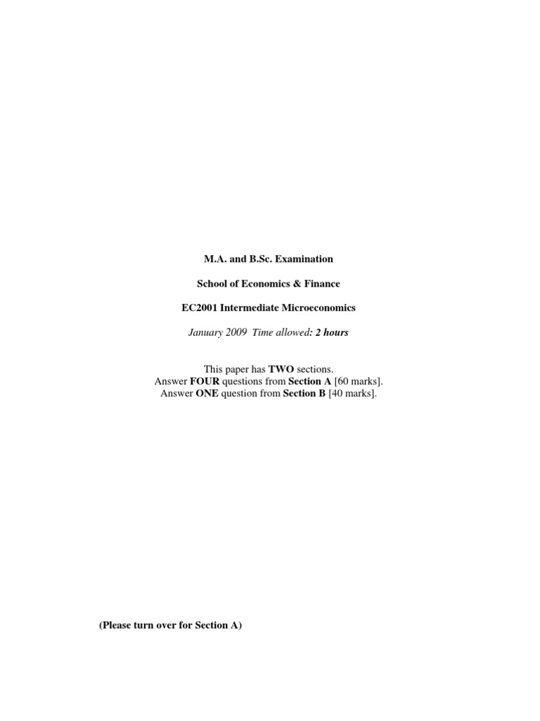 Examination School of Economics & Finance EC2001 Intermediate Microeconomics January 2009 Time allowed: 2 hours