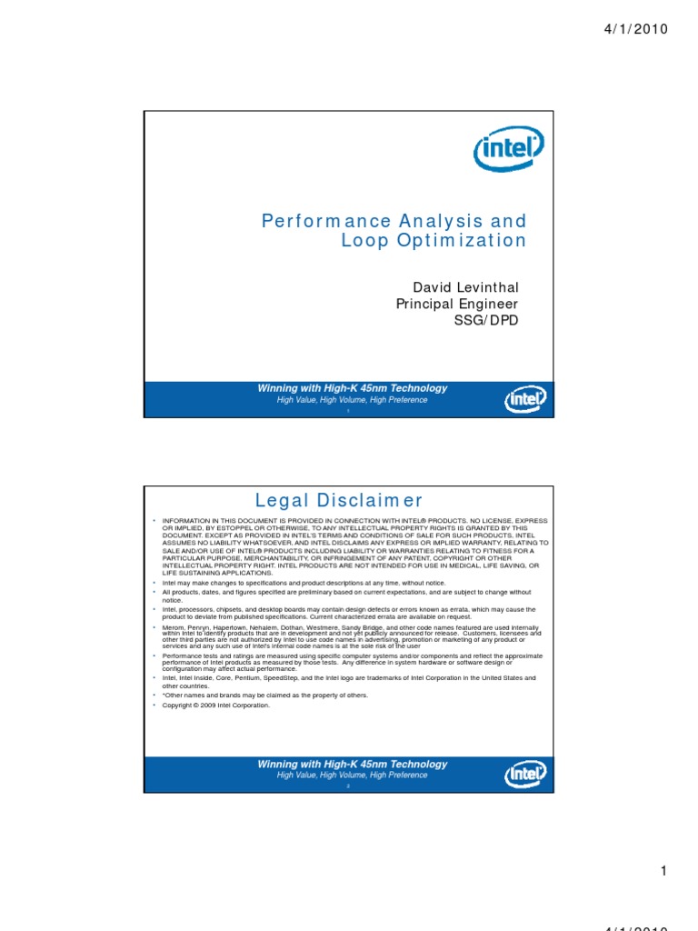 David Levinthal Principal Engineer SSG/DPD SSG/