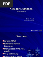 Xml: - Extensible markup language. It is a Meta language. Meta language is a mother language of all other languages. Xml has no predefined elements & tags. So we must define our own tags. We can store limit amount of data. Xml documents are defined as .xml extension. Xml is mainly useful to store, carry & exchange data, but it is not designed to display data. Note: - xml is language neutral, software, hardware independent tool for transmitting data. Xml documents can also be used to store data in files or databases but some applications (xml parser, xml beans) can be written to store data & retrieve data from database. Xml syntax rules: - The syntax rules of xml are very simple & strict. So creating that can read & manipulate xml is very easy. All xml elements must have a closing tag with xml. Ex: - <p> this is a paragraph </p> //valid <p> --------// invalid in xml (it illegal to omit the closing tag) Xml tags are case sensitive: Opening & closing tags must be written with the same case Ex: - <Letter> tag is different from the tag <letter> All elements must be properly nested. Improper nesting of tags makes no sense to xml. In xml all elements must be properly nested within each other like this Ex: - <b> <i> </i> </b> // valid <b> <i> </b> </i> // invalid All xml documents must have root element (parent element). All xml documents must contain a single tag pair to define a root element. All other element must be within this root element. Ex: - <root> <child> <sub child> ------- </sub child> </child> </root> Within xml, white space is preserved (continued). So, the white space in xml documented is not truncated. Element naming: - Xml elements must follow these naming rules (while defining own tags) 1) Names can contain letters, numbers & other characters. 2) Names must not start with a number or punctuation character. 3) Names must not start with the letters (xml or Xml or XML). 4) Names can not contain spaces <message> -------- </message> // valid <\mess> ------- </mess> // invalid <first mess> ------- </first mess> // invalid SUDHEER REDDY
