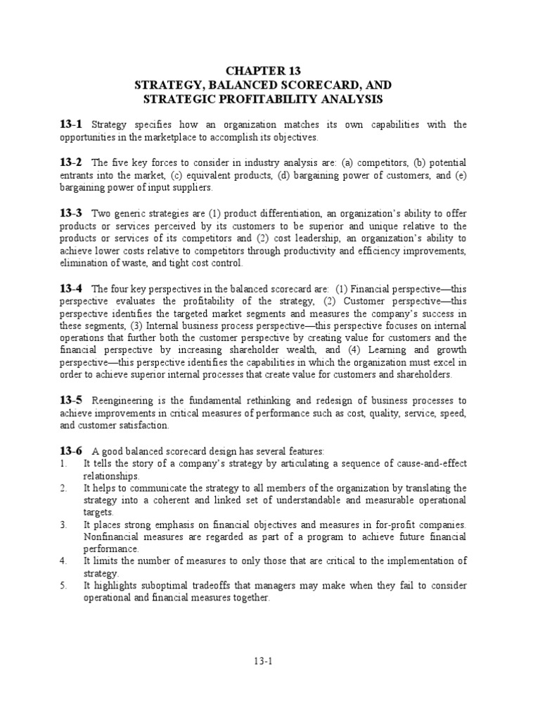 Strategy, Balanced Scorecard, and Strategic Profitability Analysis 13-1 13-2