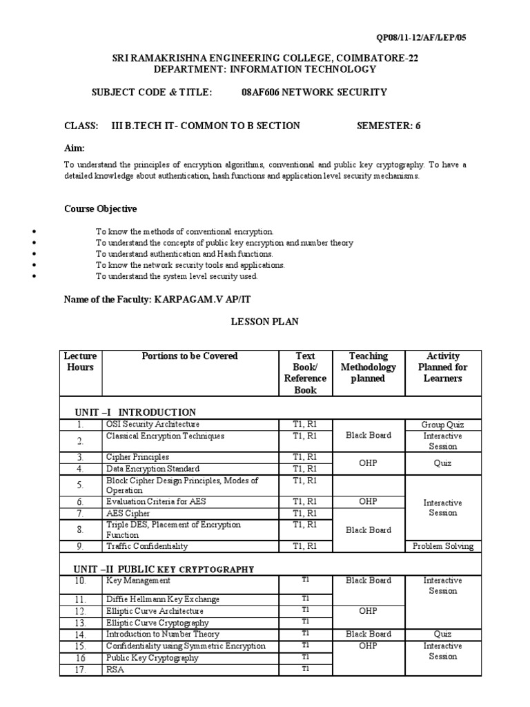 08AF606 NETWORK SECURITY SEMESTER: 6