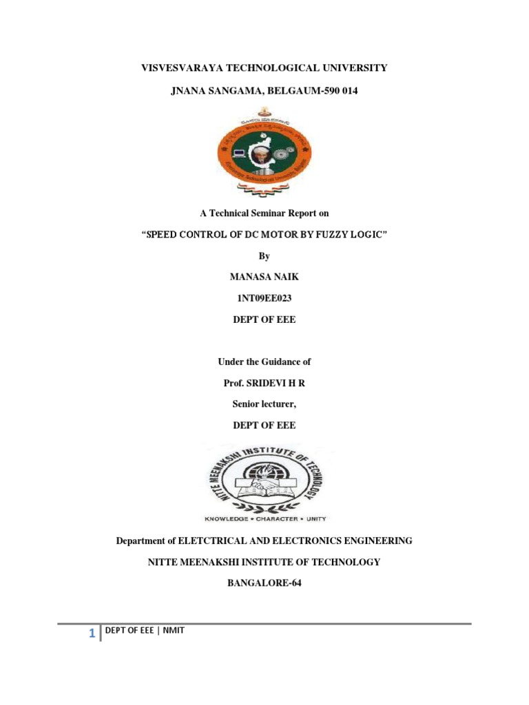on the seminar entitled SPEED CONTROL OF DC MOTOR BY FUZZY