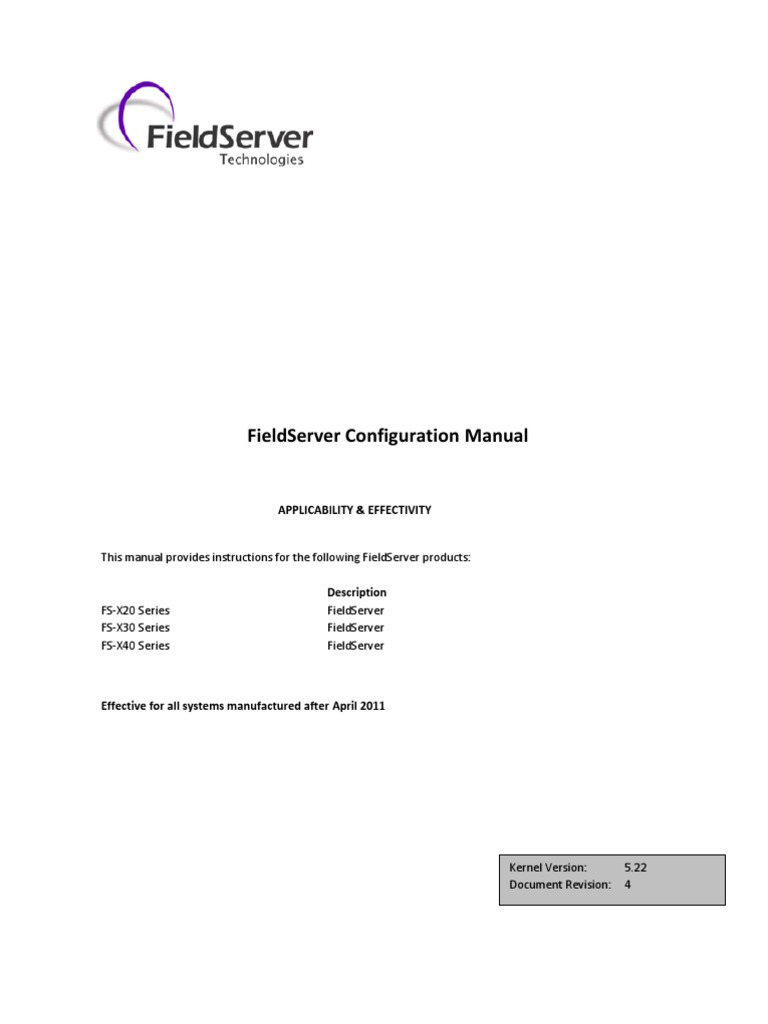 This manual provides instructions for the following FieldServer products: Description FieldServer FieldServer FieldServer