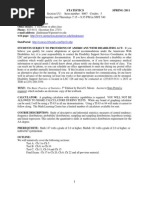 Determination of Grade: There will be four in-class Chapter tests plus a cumulative final exam. The average of the four chapter tests will count as 72% of your grade. There will also be four Quizzes. The lowest quiz grade will be dropped. The average of the other three Quiz grades will count as 9% of your grade. The final exam will count as 15% of your grade. Attendance and participation will count for the final 4% of your grade. Letter grades are determined from the weighted average as follows: A 93-100 C+ 77-79 A- 90-92 C 70-76 B+ 87-89 D 60-69 B 83-86 F below 60 B- 80-82