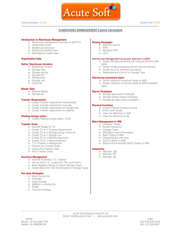 -----------------------------------------------------------------------------------------------------------------------------------------WAREHOUSE MANAGEMENT Course Curriculum