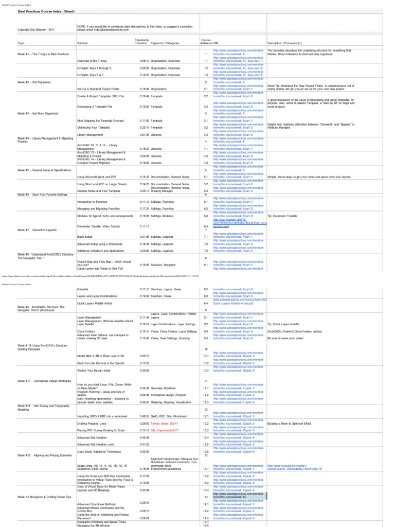1:25:03 Sections, Marker Cadimage 1:30:38 Exporting Schedules 1:36:20 http://www.acbestpractices.com/memberhome/the-course/coaching-calls/coachingcall-april-28-2011/ Best Practices Course - Comprehensive Index now on Google Docs Description of the Index and uses Searching this Course Index Request for help to update and improve the Index Enounce MySpeed software for speed listening to videos 0:00:19 0:02:14 0:04:20 0:06:20 0:08:48 Enounce MySpeed 0:12:40 0:14:17 0:15:39 0:17:34 0:18:10 0:19:08 0:19:54 0:20:57 0:21:28 0:22:58 0:24:22 0:25:14 0:27:46 0:28:02 0:28:55