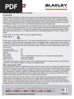 Two potential problems are associated with low power factor. First many utilities have explicit or implicit charges for low power factor. Second, low power factor increases the current, and hence losses, in transformers and the electrical distribution system. These losses cost money and generate excess heat in the electrical distribution system, which may shorten equipment lifetime or cause production shut downs. These potential problems are discussed in the sections that follow. Power Factor Charges Many utilities charge for low power. To measure power factor, the most common type of utility meter measures the total kVAr-hours and kVA-hours over the billing period and calculates the average power factor as: PF = Cos [ ArcSin (kVArh / kVAh) ] The most common methods of charging for low power factor are: 1. Adding a demand penalty when the power factor dips below a set amount (usually 90%) For example: the Cinergy DS rate specifies a demand penalty of: 0.9 - PF kWactual when PF < 0.9 PF If actual power was 100 kW, the power factor was 80%, and the avoided cost of demand were $15.67 /kW, the monthly power factor charge would be: 0.9 - 0.8 100 kW = 12.5 kW 0.8 12.5 kW x $15.67 /kW = $196 2. Basing the demand charge on the supplied power Ps (kVA), rather than the actual power used Pa (kW). For example, assume billing demand is based on kVA rather than kW and the demand charge is $15.00 /kVA-month. If actual demand was 100 kW, the power factor was 80%, the implicit monthly power factor charge would be: kVAPF = 80% = kW / PF = 100 kW / 0.8 kW/kVA = 125 kVA kVAPF = 100% = kW / PF = 100 kW / 1.0 kW/kVA = 100 kVA Penalty = $15 /kVA-month x (KVAPF = 80% - KVAPF = 100%) Penalty = $15 /kVA-month x (125 kVA 100 kVa) = $375 /month