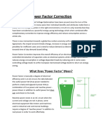 3. Basing part of the overall charge on the reactive power kVAr, which increases as power factor decreases. For example, the Dayton Power and Light General Service Primary Rate specifies a charge of $0.30 per kVAr. The relationship between reactive and actual power is: Pr (kVAr) = Pa (kW) x Tan[Cos-1(PF)] If the actual power was 100 kW and the power factor was 80%, then the power factor charge would be: Pr (kVAr) = 100 (kW) x Tan[Cos-1(0.8)] = 75 kVAr 75 kVAr x $0.30 /kVAr = $23 Power Losses and Excess Heat Generation In addition to possible power factor charges, low power factor also results in excess current in the electrical distribution system upstream from the device. The excess line current results in increased resistive losses, and hence heat gain, in the wiring and electrical distribution equipment. The quantity of line losses associated with low power factor correction can be calculated as follows: LL1 = Line loss before power factor correction LL2 = Line loss after power factor correction % Line Loss Savings = (LL1 LL2) / LL1 LL1 = I21R1 = (kVA1/V1)2 R1 =[(kW1/PF1) / V1]2 R1 = [kW2 R / V2]1 / PF12 Thus: LL2 = [kW2 R / V2]2 / PF22 Assuming everything remains constant except for the power factor: [kW2 R / V2]1 = [kW2 R / V2]2 = [kW2 R / V2] And, % Line Loss Savings = (LL1 LL2) / LL1 % Line Loss Savings = [(kW2 R / V2) / PF12 (kW2 R / V2) / PF22] / (kW2 R / V2)1 / PF12 % Line Loss Savings = [1 / PF12 1 / PF22] / 1 / PF12 % Line Loss Savings = 1 (PF1/ PF2)2 For example, if the power factor were improved from 80% to 90%, the percent line loss savings would be: