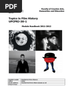 Arnim Alex Seelig Cinema. Dancing on the Volcano: Essays on the Culture of The Weimar Republic. Ed. Thomas W. Kniesche and Stephen Brockmann. Columbia, SC: Camden House, 1994. 181-193. Print. Westfront 1918 (1930); All Quiet on the Western Front (1930); Niemandsland (1931); Das Cabinet des Dr. Caligari (1920); Wege zu Kraft und Schnheit (1925); Metropolis (1927); M (1931). By discussing some of the most exemplary films of Weimar Cinema with an eye towards their portrayal of distressed communities in a state of shock (Kaes 3), this week the class begins to look at the ways in which war has had an impact on artistic representation. The phenomenon of shell shock and the general trauma of WWI will be discussed as a historical novelty in its time and will be illustrated by viewings of Niemandsland, All Quiet on the Western Front, and Westfront 1918. The film Niemandsland, in which the characters struggle to overcome the limitations of their languages, will also serve to bring to the forefront the early 20th century notion that cinema was a new lingua franca which could transcend the other languages (Vertov 85). Pabsts Westfront 1918, on the other hand, will serve as an occasion to contemplate the innovations that sound brought to the cinema, as in this film the director made the fullest use of integrating auditory experience. The latter aspect will be the beginning of a recurring discussion of the role of special effects in filmmaking. Week 4: Propaganda in German, British, & American Cinema during WWII Fox, Jo. Film Propaganda in Britain and Nazi Germany: World War II Cinema. Oxford; New York: Berg, 2007. 1-15 [Film Propaganda and World War II: Debates and Contexts]. Print. Rentschler, Eric. The Ministry of Illusion: Nazi Cinema and Its Afterlife. Cambridge, Mass: Harvard University Press, 1996. 1-24 [Introduction: The Power of Illusions]. Print. Also web [Ebook]. 13 Oct. 2011. <http://quod.lib.umich.edu/cgi/t/text/ text-idx?c=acls;idno=heb08223> Hitlerjunge Quex (1933); Triumph des Willens (1935); Jud S (1940); Der ewige Jude (1940); Die groe Liebe (1942).