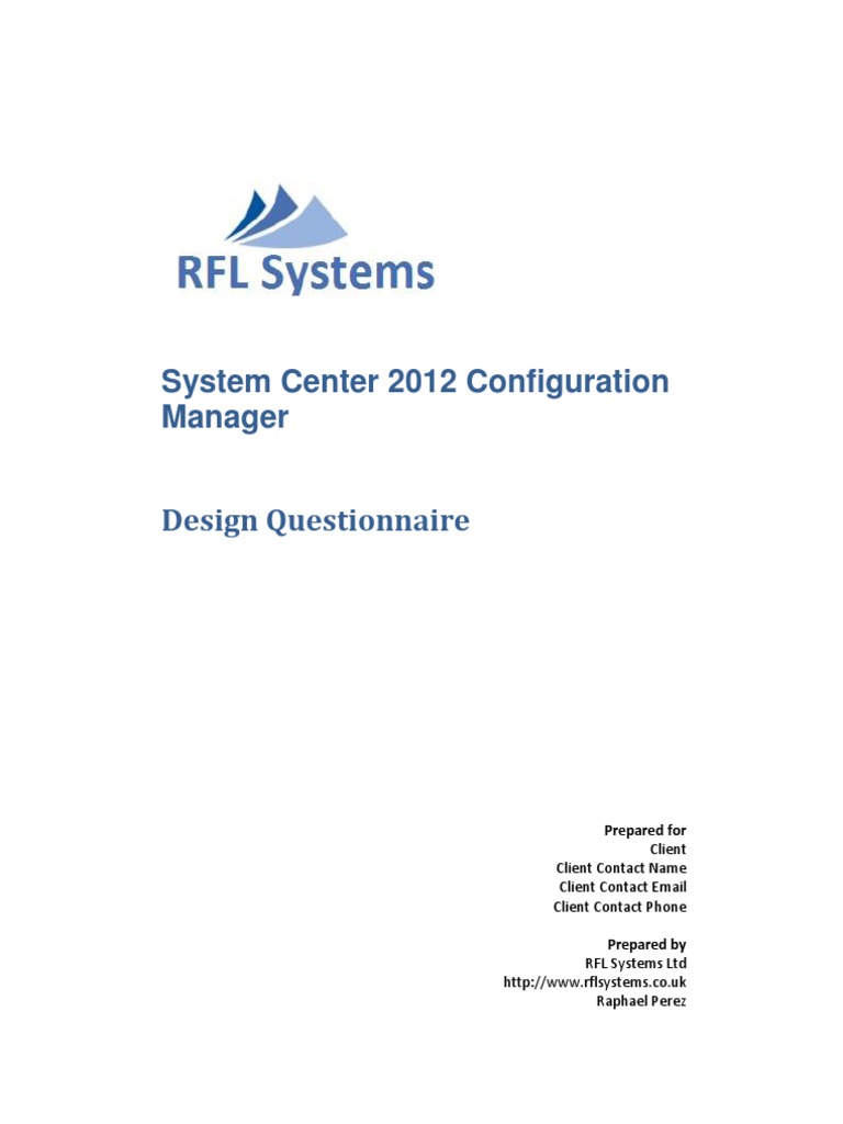 Prepared for Client Client Contact Name Client Contact Email Client Contact Phone Prepared by RFL Systems Ltd http://www.rflsystems.co.uk Raphael Perez