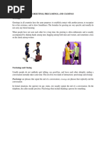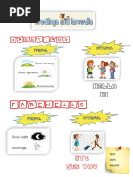 A: Well, thats very interesting, but Im afraid I must . B: All right. Ill be talking to you again later, maybe? A: .. B: .. Situation 4 A: And thats just the way it happened. B: Oh, I almost forgot. Im supposed to meet A: .. B: .. A: .. B. Cued dialogues Directions: After looking at each situation carefully, discuss with your partner(s) the relationship among the speakers and the appropriate level of formality. Then practice, using any words or expressions appropriate to express the functions given. The Tutor will ask you to perform the dialogue for the class. Situation 1 A 1. Greets B 2. Asks about Bs family 3. Replies to B question, pre-closes 4. Replies to closing Situation 2 A 1. Greets B 2. Talks about weekend, asks about Bs weekend 3. Gives pre-closing 4. Closes B 1. Greets A, asks about weekend 2. Answer questions 3. Replies to pre-closing 4. Replies. B 1. Greets A 2. Answer questions, asks about As job 3. Replies to pre-closing, gives closing