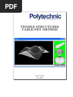 of the first line or arc as one of its endpoints. Each successive line or arc picked must then connect to the other endpoint of the previous line or arc. This continues until the perimeter of the geometry is closed and the endpoint of the last line in the integer area must be back at the starting point; i.e., the perimeter in the geometry area and the perimeter in the integer area must close simultaneously. Both of these perimeters must progress ccw around the area. When a line or arc is picked, the entry of number of elements determines the length of the line in the integer area. The direction entry chooses one of four allowable line directions in the integer area. The directions are labeled 1, 2, 3, and 4, which correspond to right(+I), up(+J), left(-I), and down(-J), respectively, in the I,J coordinates. The integer area of the model must lie in the positive quadrant of I,J coordinates. Since the starting point in the integer area is at 1,1, and the perimeter must be ccw, the direction for the first line or arc must be 1. The direction for the second line or arc picked may be 1 or 2. Successive lines may have any direction values as long as some lines with directions 1 and 2 are used before any with directions 3 or 4, so that the I and J coordinate values always remain positive. The total number of elements on all lines in the 1 direction must match the total number in the 3 direction, and the total number in the 2 direction must match the number in the 4 direction. The bandwidth of the structure stiffness matrix is minimized by making the number of elements in the I direction smaller than in the J direction. The limits are IMAX-1 elements in the I direction and JMAX-1 elements in the J direction. However, no model may have more than the maximum number of nodes or elements listed in the first section of this guide. Mapping is an iterative process of distorting the integer area to fit in the geometry area. After a few iterations a mesh will be drawn on the screen. If it appears to be suitable then it can be accepted, or more iterations may be requested to make it smoother. If it is unacceptable then a different integer area may be tried. F1 POINT The menu of functions for mesh generation is F2 LINE