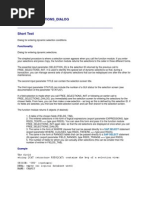 1) Create a program to display the following fields from the table MARA: Material number Material type Industry sector Material group At the end of the list, print the date and time when the list was created and the user-id of the person who created the list. 2) Write a program to accept a sales document number and a sales document item number from the user and retrieve the following details from the table VBAP. Material number Net value of the order item Cumulative order quantity in sales units 3) Write a program to accept the names of three columns and retrieve the user specified columns from the table SPFLI. 4) Create a program to perform the following: Accept a Sales document type from the user Retrieve the details of all the sales documents whose type is same as the user entered type, from the table VBAK. Retrieve all the item details for each of these sales documents, from the table VBAP. Display the data in the following format: Sales Doc1 Sales org Distribution channel Division