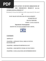 provides up to date, accurate and relevant information and it is gathered in an investigation according to the needs of the problem. Tools Used To Collect The Primary Data: The primary data is collected on the basis of survey method with the help of questionnaires, and interviews, personal observation with consumers. Both open and closed end questions are used in the questionnaire. Methods: The survey method is used to collect the primary data with the help of questionnaire based on explorative and conclusive research. SECONDARY DATA: The secondary data can be defined as data collected by son\me one else for purposes other than solving problem being investigation and previously meant for another purpose. A secondary data is collected from the books, periodical journals, magazines, papers, company records, internet and other publications. Sampling Unit: It refers to the individuals who are to be surveyed in the study and it is the customer who is consuming or using or who has bought Samsung products are surveyed. Sample Size: It refers to the number of people surveyed for this topic, in the study 120 people were surveyed and responses drawn. Sampling technique: Sampling refers to the method of selecting a sample from a given universe with a view to draw conclusions about that universe. A sample is a representative of the universe selected for study. Convenience sampling is used in exploratory research where the researcher is interested in getting an inexpensive approximation of the truth. As the name implies, the sample is selected because they are convenient. This non probability method is often used during preliminary research efforts to get a gross estimate of the results, 10