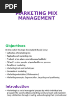 MARKETING MIX Marketing mix is the set of marketing tools that a firm uses to pursue its marketing objectives in the target market. McCarthy has popularized a four factor classification of marketing tools known as the 4Ps of the marketing mix. They are: Product Price Place Promotion