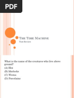 (A) Hope (B) The past (C) Space (D) Time 2. What is the name of the creatures who live above ground? (A) Eloi (B) Morlocks (C) Weena (D) Porcelains 3. As time passes, what happens to the sun? (A) It gets smaller (B) It stops moving (C) It becomes dimmer (D) It speeds up in its trajectory across the sky 4. What do the Morlocks fear most? (A) The time machine (B) The Time Traveller (C) The Eloi (D) Light 5. When the novella appeared, H.G. Wells was a(n): (A) Astronomer (B) Priest (C) Research assistant (D) Science teacher 6. Weena seems to love the Time Traveller. Why? (A) He is big and strong (B) He saved her life (C) He is not afraid of Morlocks (D) He is exotic 7. When the Time Traveler returns home in Chapter 12, even he himself wonders if the whole experience was just a what? (A) Hallucination. (B) Dream. (C) Fantasy. (D) False memory. 8. What allows the Time Traveler to escape the Morlocks? (A) Shouting as loudly as he can. (B) His sidearm. (C) Weena comes with reinforcements. (D) Setting a piece of paper on fire. 9. Why is it significant that the moon is starting to wane in Chapter 7? (A) Because the Morlocks feed off lunar energy. (B) Because the nights will be darker. (C) All of the above. (D) None of the above. 10. How does the Time Traveler determine that the time machine was taken into the base of the Sphinx? (A) He can see it through the windows in the base of the statue. (B) He smells burnt metal. (C) He finds marks and footprints. (D) The Eloi read him a note they found. 11. Of what foodstuff does the diet of the Eloi consist? (A) Fruit. (B) Vegetables. (C) Insects. (D) Poultry. 12. What is (or was) the Palace of Green Porcelain? (A) Another Eloi habitation (B) A museum (C) A portal to the underworld (D) A Morlock stronghold 13. The Time Machine was first published in book form in what year? (A) 1895 (B) 1905 (C) 1915 (D) 1925 14. What is the function of the underground machines? (A) They manufacture industrial goods for the Eloi. (B) They are used to cook Eloi (C) They are the ventilators of the underworld (D) They are Morlock-mobiles 15. The Eloi remind the Time Traveller of: (A) Fairies (B) Cavemen (C) Lawyers (D) Victims of tuberculosis