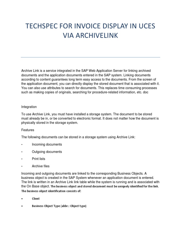 TECHSPEC FOR INVOICE DISPLAY IN UCES VIA ARCHIVELINK